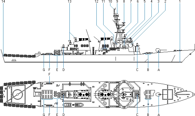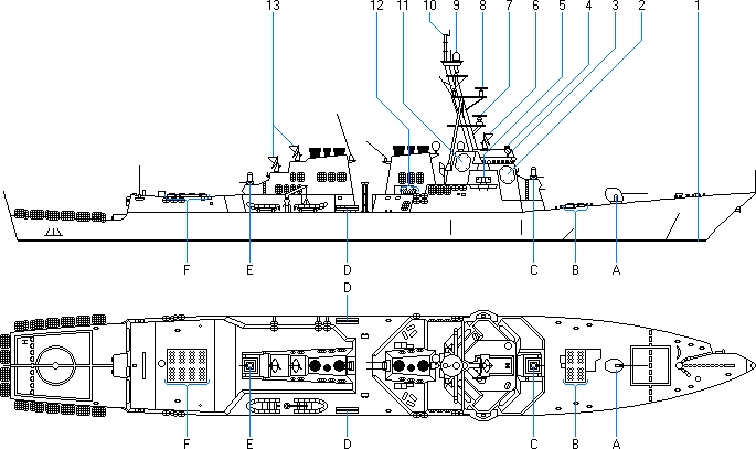 | Flight 1 / Flight 2 | Flight 2A | modernizacje | AEGIS BMD | dane taktyczno-techniczne | rysunki | lista okrętów |