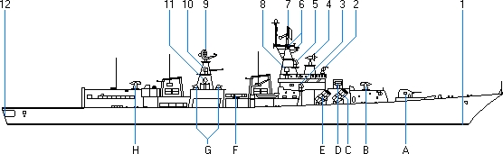 - Wyrzutnia torped 533 mm.model PTA-53 dla torped zwalczania okrętów podwodnych lub rakietotorped RPK-2 Vyuga (SS-N-15 Starfish) lub rakietotorped RPK-6 Vodopod (SS-N-16 Stallion)