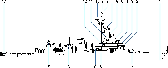 - Wyrzytnia ??? dla rakiet MBDA MM 40 Exocet (MM 38 Exocet na okrętach "Georges Leygues" i "Duplex")