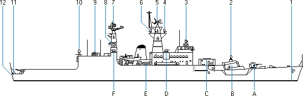 - Wyrzutnia Zif-122 systemu 4K-33M Osa-M2 dla rakiet 9M-33M (SA-N-4B Gecko) (wyrzutnia Rafael VLS (Vertical Launching System) dla rakiet IAI (Israel Aircraft Industries) Barak na okręcie "Ganga")