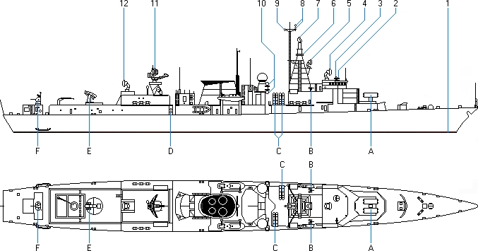 - Wyrzutnie torpedowe kalibru 324 mm. model Mk 32 dla torped firmy ATK (Alliant TechSystems) model Mk 46 Mod. 5