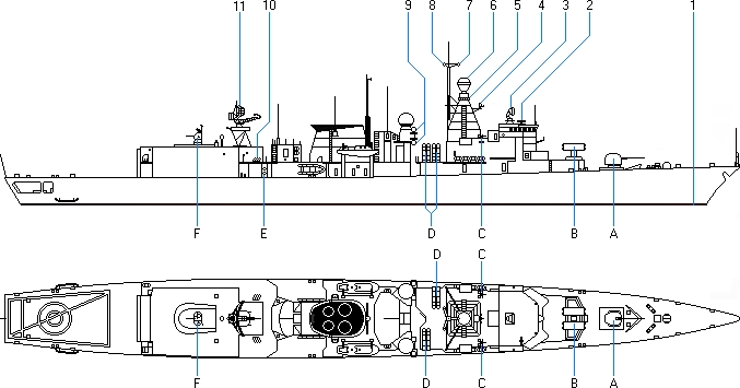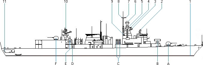 - Wyrzutnia firmy Raytheon model Mk 29 GMLS (Guided Missile Launching System) dla rakiet firmy Raytheon/NATO model RIM-7M Sea Sparrow