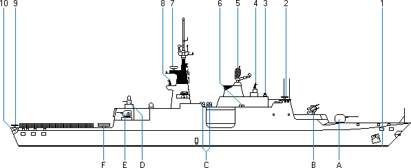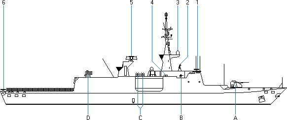 - Radar Thales Castor 2J kierowania ogniem armaty 76 mm. i rakiet Lockheed Martin Sea Chaparral