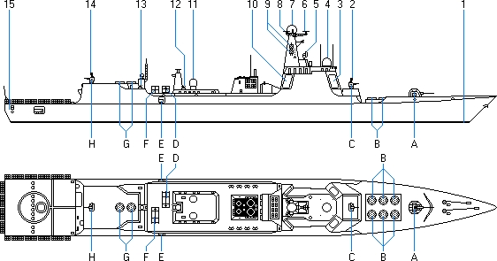 - Wyrzutnia VLS (Vertical Launching System) dla rakiet HQ-9 (FT-2000)