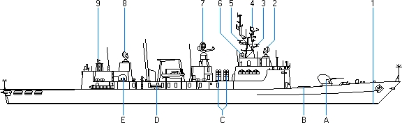 - Wyrzytnia Martin Marietta Mk 41 VLS (Vertical Launching System) dla rakiet firmy Raytheon/NATO model RIM-7M Sea Sparrow
