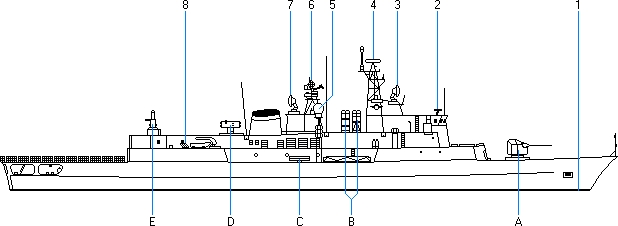 - Wyrzutnia torped 324 mm. model Mk 32 Mod. 5 dla torped firmy ATK (Alliant TechSystems) model Mk 46 Mod. 5